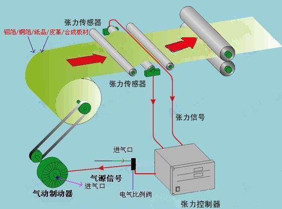在卷材分切的生產(chǎn)過(guò)程中,為了保證分切后的成品質(zhì)量,分切材料的張力必須有一個(gè)恒定值。分切機(jī)張力控制系統(tǒng)采用美國(guó)Nexen制動(dòng)器,構(gòu)成一個(gè)恒張力控制,取代原有的磁粉制動(dòng)控制,其結(jié)構(gòu)簡(jiǎn)單可靠、操作方便、控制穩(wěn)定。在紙張、塑料、薄膜、膠片、橡膠、無(wú)紡布、銅箔、鋁箔、鋼帶、鋁帶等卷材的分切加工過(guò)程中,要保持生產(chǎn)的品質(zhì)、效率及可靠性,一套功能完備的張力控制系統(tǒng)是必備的條件。而制動(dòng)器及離合器作為整個(gè)系統(tǒng)中的終端執(zhí)行機(jī)構(gòu).其性能的優(yōu)劣、壽命的長(zhǎng)短、安裝維護(hù)的難易、直接影響著產(chǎn)品的質(zhì)量及成本。分切機(jī)張力控制系統(tǒng)中常用的離合器及制動(dòng)器有:電磁式、磁粉式及氣動(dòng)式等。電磁離合器和制動(dòng)器在小張力控制系統(tǒng)中有些應(yīng)用,但由于其控制的扭矩較小因此應(yīng)用范圍也較窄。磁粉離合器和制動(dòng)器是張力控制系統(tǒng)的常用執(zhí)行元件,在傳統(tǒng)的小張力控制系統(tǒng)中有廣泛的應(yīng)用。但由于其本身的結(jié)構(gòu)及性質(zhì)決定長(zhǎng)期在潮濕的環(huán)境下磁粉易受潮,同時(shí)由于其結(jié)構(gòu)及原理的特點(diǎn)在長(zhǎng)期工作時(shí)容易產(chǎn)生磁粉燒結(jié)、生銹等現(xiàn)象,從而不能輸出線性扭矩。而且要較大扭矩輸出時(shí),磁粉離合器及制動(dòng)器的造價(jià)也較高。Nexen制動(dòng)器及離合器應(yīng)該說(shuō)是在張力控制的發(fā)展需要。美國(guó)Nexen離合器制動(dòng)器氣動(dòng)制動(dòng)器自問(wèn)世以來(lái),經(jīng)過(guò)數(shù)十年的革新現(xiàn)已廣泛應(yīng)用于各種工業(yè)環(huán)節(jié):廣泛應(yīng)用于機(jī)械橡膠設(shè)備、化工設(shè)備、涂料設(shè)備、食品機(jī)械、包裝機(jī)械、印刷機(jī)械, 鍛壓設(shè)備、成型機(jī)、木工機(jī)械, 自動(dòng)機(jī)、填充機(jī)械, 合板制造、搬送機(jī)械, 制藥機(jī)械, 伸線材、纖維機(jī)械, 金屬加工, 合板制造機(jī)械, 制粉設(shè)備, 輪胎成型機(jī), 造紙機(jī)械, 紡織機(jī)械, 升降裝置等行業(yè)。它不僅永不燒結(jié)、不會(huì)生銹。同時(shí)也消除了在使用時(shí)磁粉制動(dòng)器的剩磁扭矩,線性更加理想,能夠更好的滿足在高速工作時(shí)的散熱功率的要求。