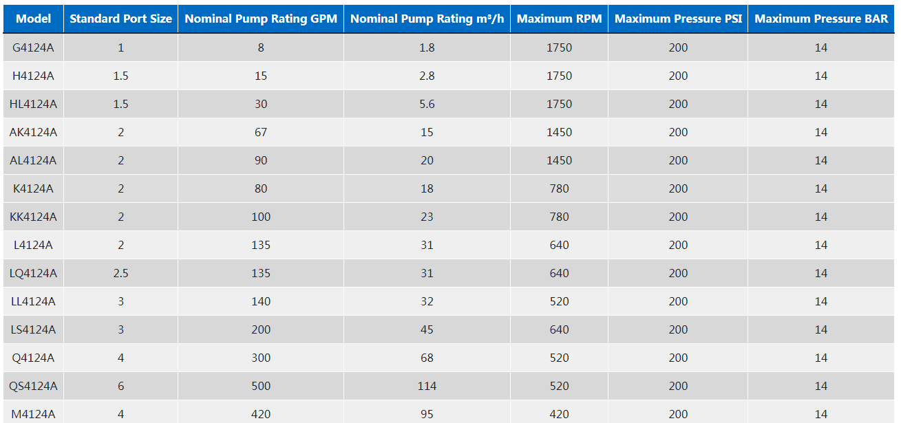 1124A系列™ 采用O-Pro®密封技術的內(nèi)部齒輪泵是粘合劑、淀粉、聚合物等的完美解決方案,因為它具有可靠的密封和易于維護。它可以處理8至400 GPM(1.8至91 m³/h)的流量。